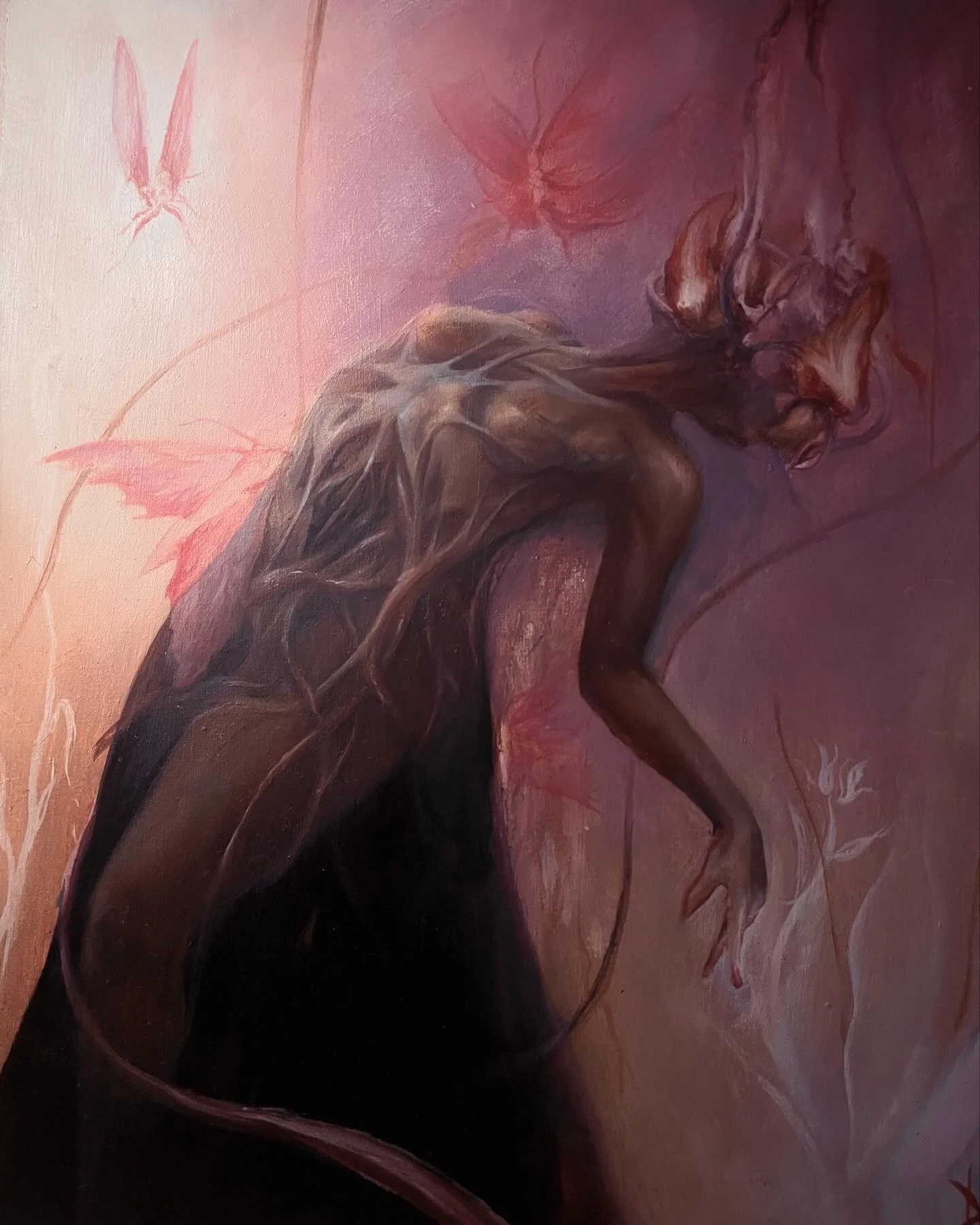 Where Moth and Vermin Destroy, oil on wood (2024)